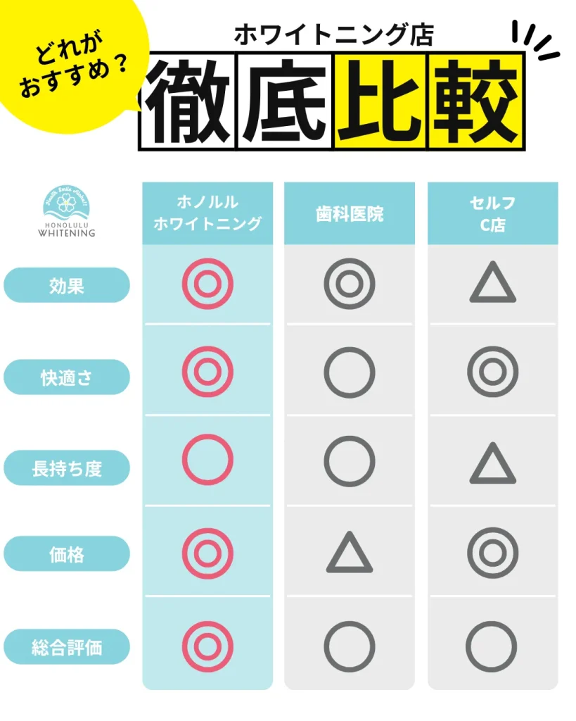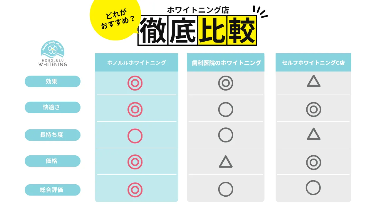 ホノルルホワイトニング京橋店は、ハワイ発アメリカ基準のセルフホワイトニングを提供する大阪・京橋の専門サロンです。痛みやしみが少なく、施術後すぐ飲食できる安心のホワイトニング。完全個室のプライベート空間でリラックスしながら初回から効果を実感。セルフホワイトニングを大阪・京橋でお探しならホノルルホワイトニング京橋店へ。